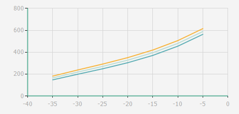 | 蒸發溫度 | 制冷量+/-5% | 能耗+/-5% | 現在能效+/-5% | 氣體流速+/-5% | 能效+/-7% | ||||