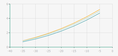 | 蒸發溫度 | 制冷量+/-5% | 能耗+/-5% | 現在能效+/-5% | 能效+/-7% | ||||