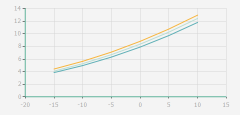 | 蒸發溫度 | 制冷量+/-5% | 能耗+/-5% | 現在能效+/-5% | 氣體流速+/-5% | 能效+/-7% | ||||