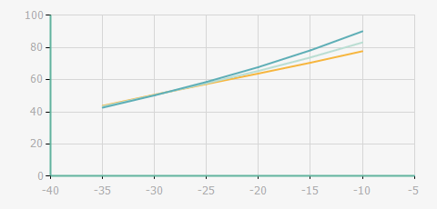 | 蒸發(fā)溫度 | 制冷量+/-5% | 能耗+/-5% | 現(xiàn)在能效+/-5% | 氣體流速+/-5% | 能效+/-7% | ||||