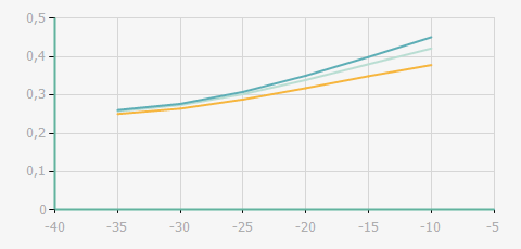 | 蒸發(fā)溫度 | 制冷量+/-5% | 能耗+/-5% | 現(xiàn)在能效+/-5% | 氣體流速+/-5% | 能效+/-7% | ||||